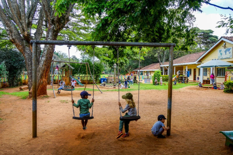 Drei unterschiedlich gestaltete Spielplätze laden zum Entdecken ein, während der gemütliche Schlafraum für Krippenkinder oder der Sensomotorische Raum Ruhe und Erholung bietet. Freitags steht der Naturtag im nahegelegenen Karura Forest, unserem Schulgarten oder unsere Matschküche auf dem Programm.